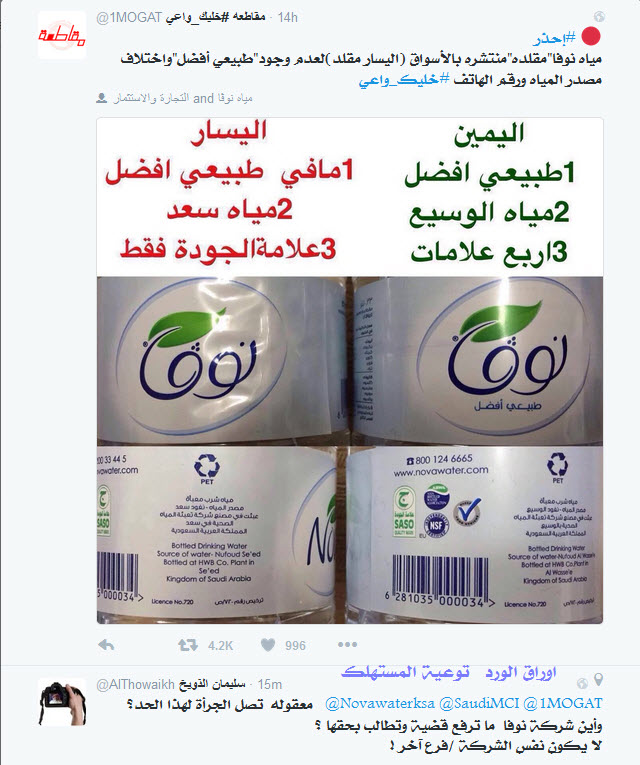 توعية المستهلك توضيح بخصوص ما تم تداوله عن مياه نوفا المقلدة