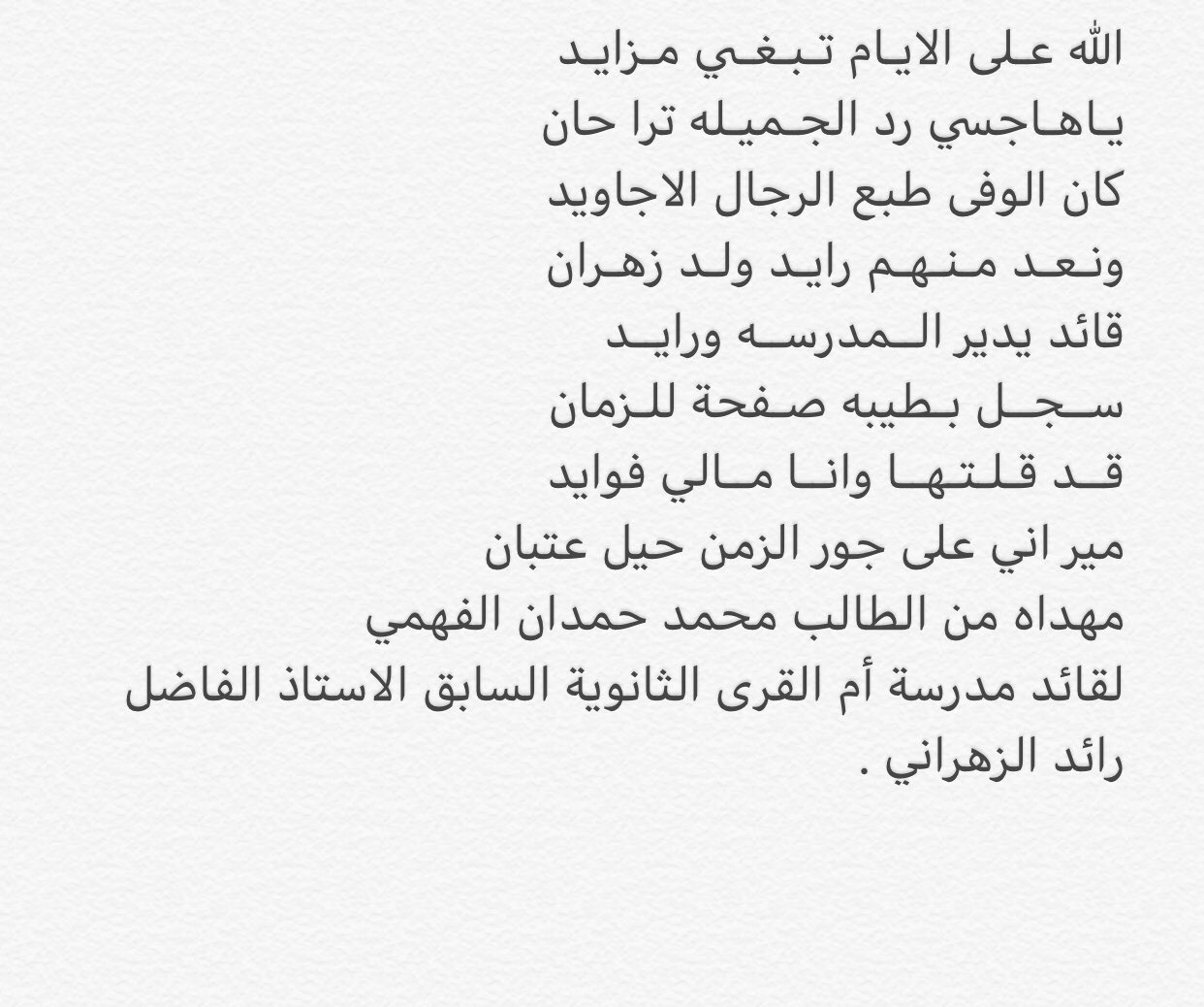 رائد الزهراني On Twitter هذه قصيدة من أحد طلابي في مدرستي السابقة أم القرى الثانوية محمد حمدان الفهمي